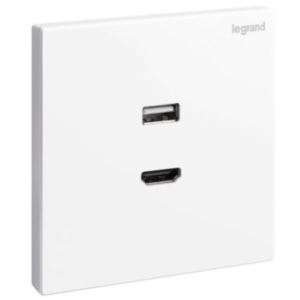 Galion – 1 gang HDMI socket outlet with type-A USB data socket transfer –