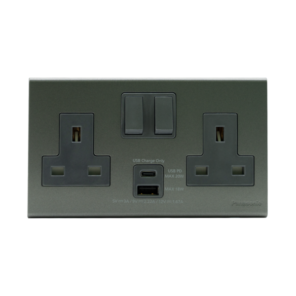 Panasonic13A 2G Socket With Usb (A+C) Refina Metallic Gray Web11123Mh