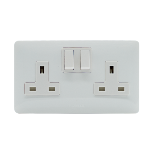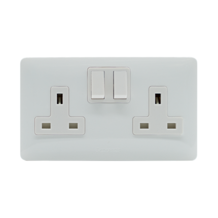 Simplus Socket Outlets 2-Gang 2-Device 13A Single Pole White Switched Socket, Full Set, WSBC1221W