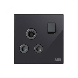 ABB Double Pole Round Pin Switched Socket, Millenium, 1 Gang, 15A, Black Glass – AM20986-BG