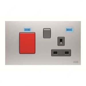 ABB Double Pole Switched Socket W/ Cooker Control Unit, Millenium, 1 Gang, 13A, Stainless Steel – AM118147-ST