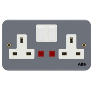 ABB Dual Pole Electrical Switch Socket With LED, Metal Clad Series, Urea/Metal, 2 Gang, 13A – BM240