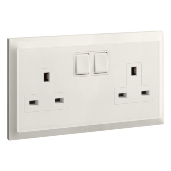 Legrand Belanko S – 2 gang single pole BS switched socket outlet inboard rockers – 13A –
