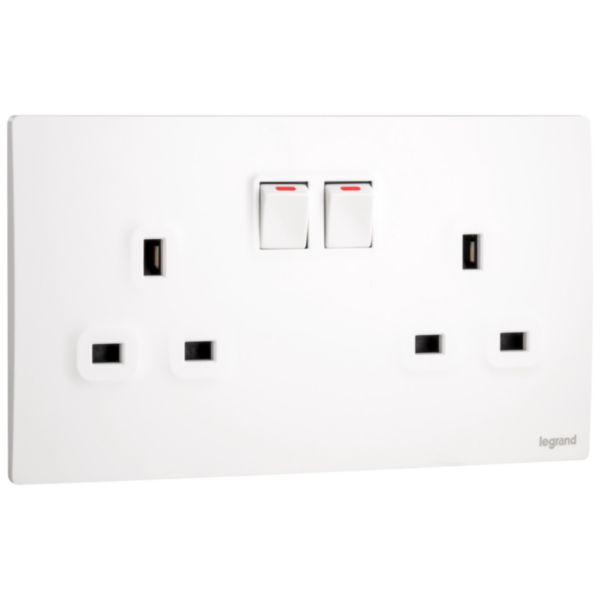 Legrand Mallia Senses – 2 gang BS switched socket outlet single pole – 13A – with 2 earth connection –