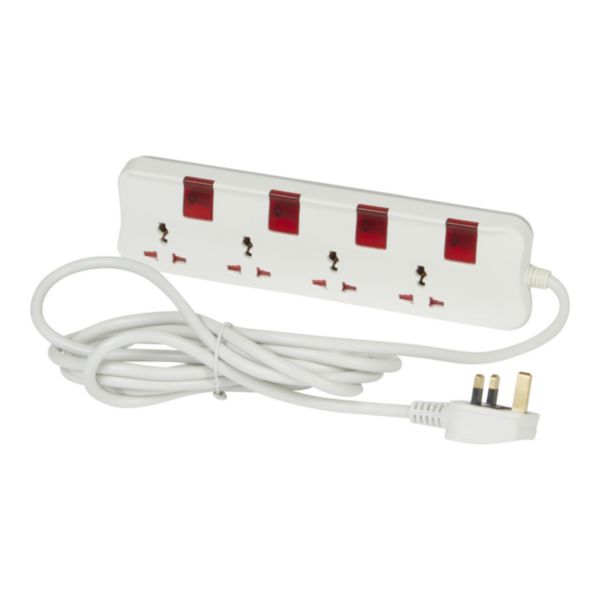 Legrand Multi-Outlet Extension Sockets MS 4X2P+E + 4 SWITCHES Illuminated Britich Standard PLUG + 3M CABLE LENGTH