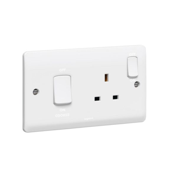 The 45A DP switch with 13A BS and neon is an electrical component that is designed for use in the UK. The component consists of a 45-amp double-pole switch and a 13-amp British Standard (BS) socket, both of which are mounted on a single faceplate. The switch is rated for up to 45 amps of current and has two poles, which means it can switch off both the live and neutral connections to the socket simultaneously.