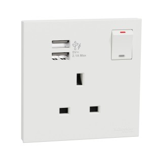 Schneider Electric AvatarOn C Switch Socket 13A 1 gang 2.1A two port USB white E8715USB_WE