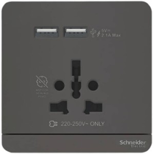 Schneider Switched socket with USB charger, AvatarOn, 10A 250V, 1gang, International soc, Dark grey E8315TSU_DG