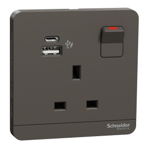 Schneider Switched socket with USB charger, Avataron, 21W type A C, 13A, Dark grey E8315DACUSB_DG